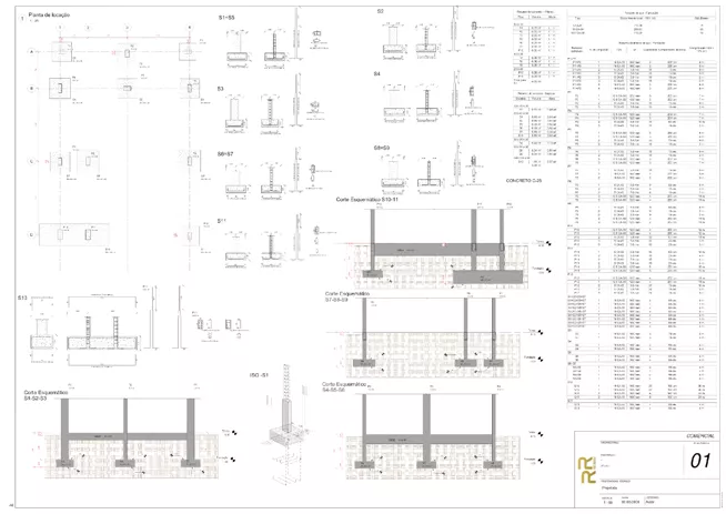 Blocos sobre estacas, tubulões, armaduras e detalhamento completo de um projeto com fundações profundas.