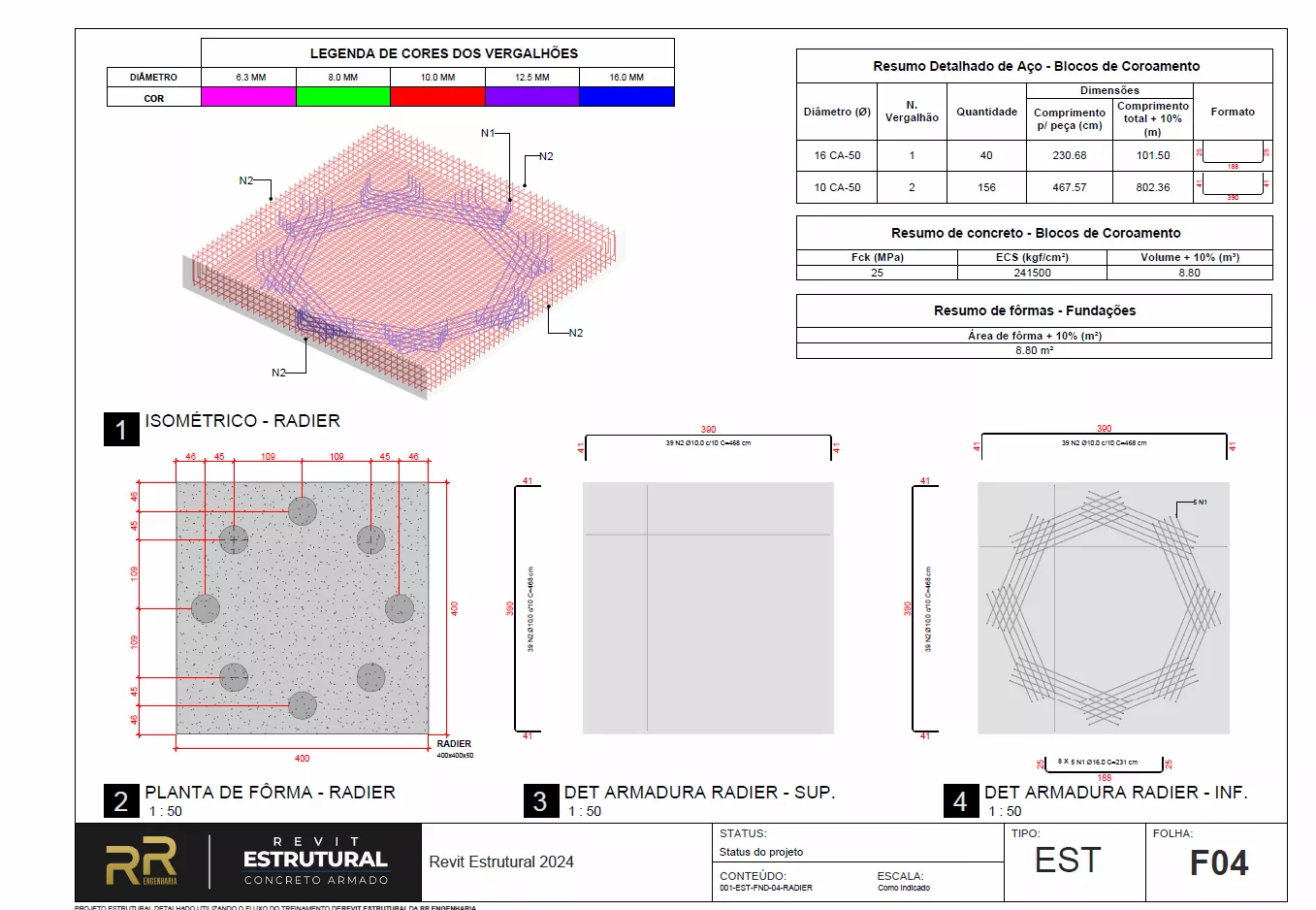 Blocos sobre estacas, tubulões, armaduras e detalhamento completo de um projeto com fundações profundas.