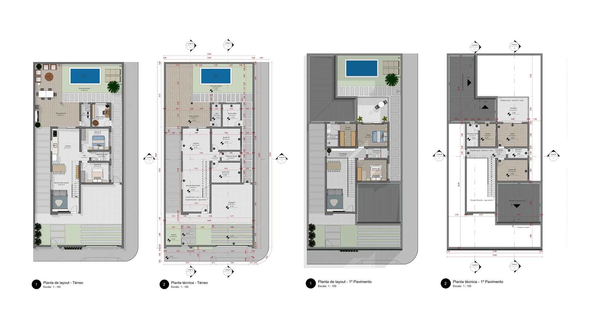 Cada painel foi pensado para uma etapa do fluxo de trabalho. Da organização do modelo ao detalhamento final.