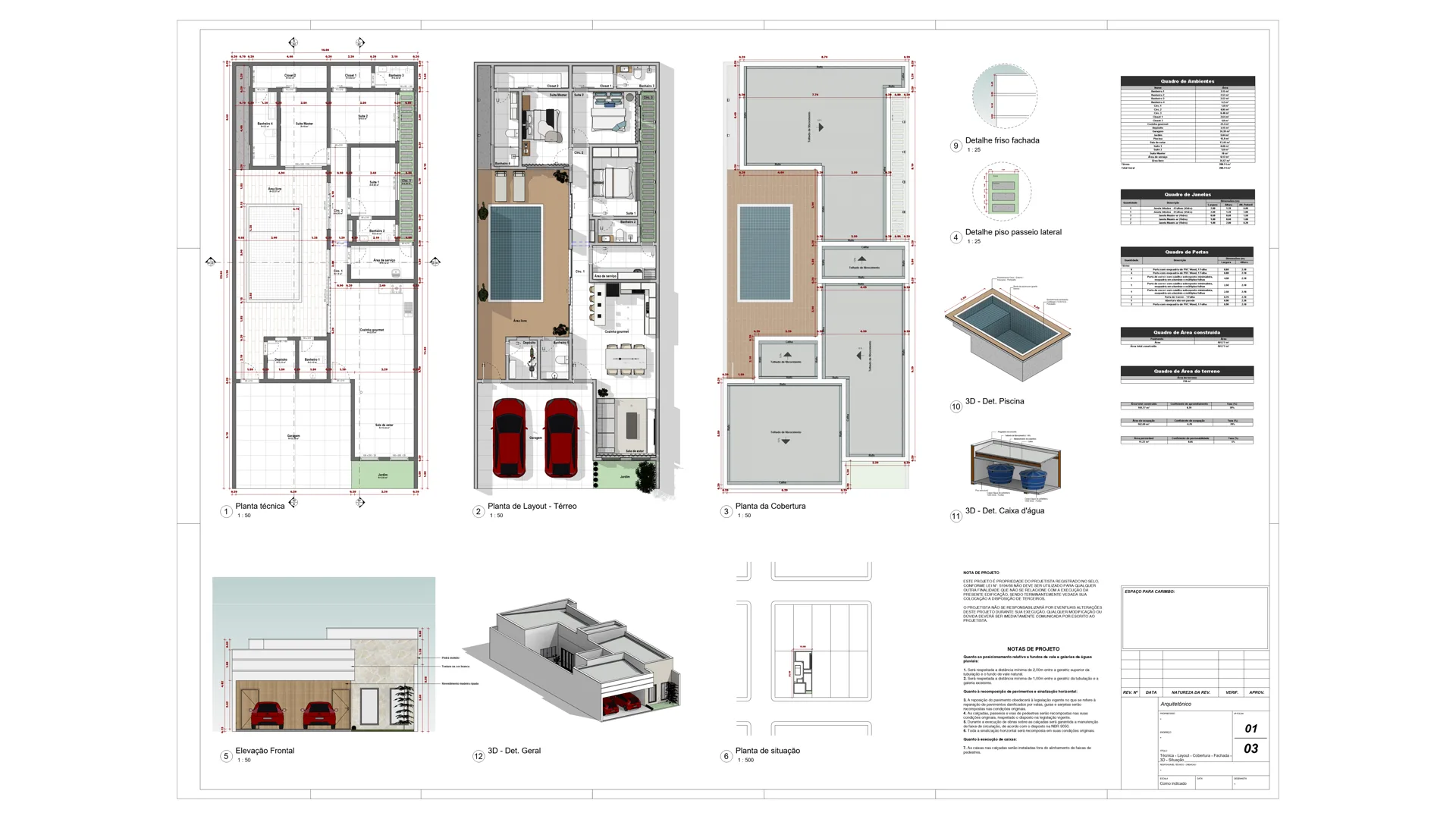 Exemplos reais de projetos detalhados automaticamente pelo plugin.
