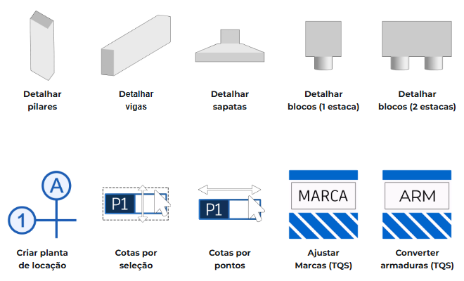 Além da ferramenta que cria as fôrmas e já lança a identificação dos elementos no melhor local possível, você ainda terá a sua disposição ferramentas para cotar tudo em poucos segundos.
