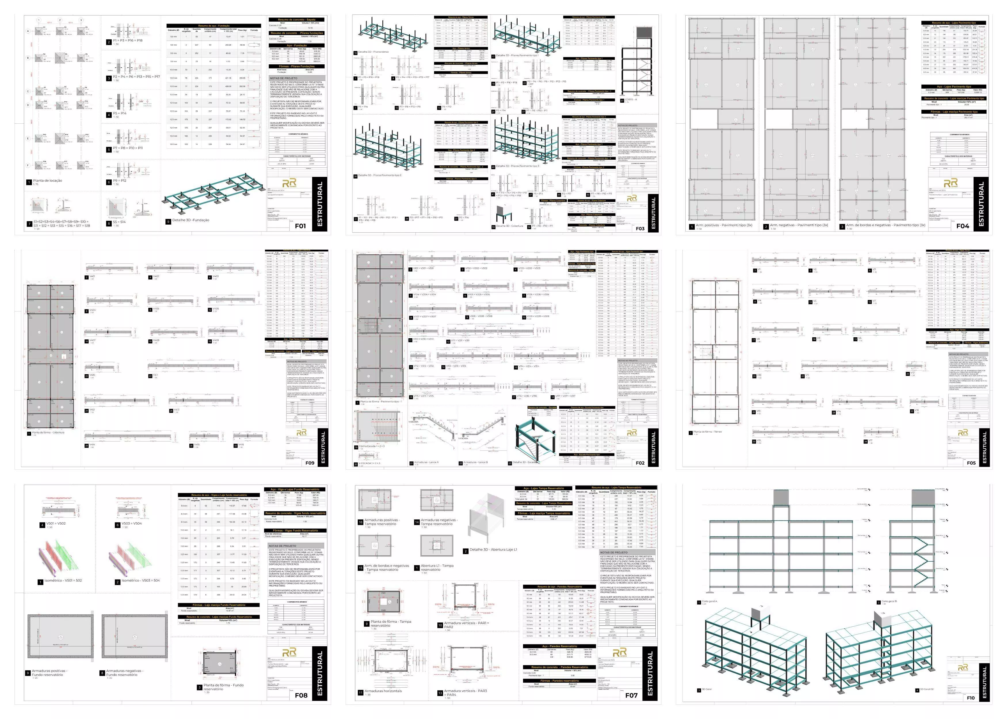 Do zero até a prancha final: modelagem, armaduras, detalhamento e pranchas de um projeto predial completo.