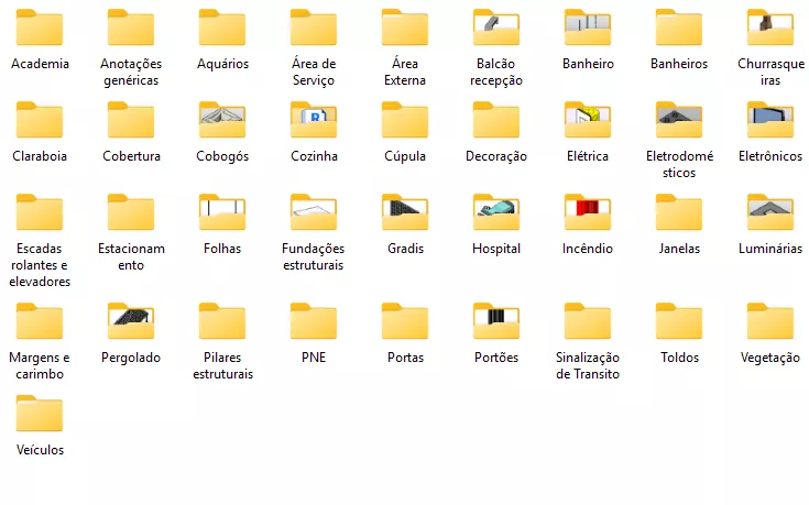Diversas famílias de interiores prontas para serem carregadas nos projetos
